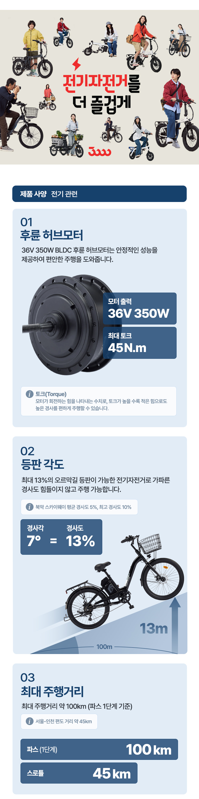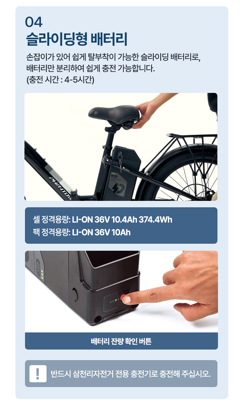 · A/S 기간 : 차체(배터리 제외) 1년, 배터리 및 부품 6개월 (단, 고객과실 제외)