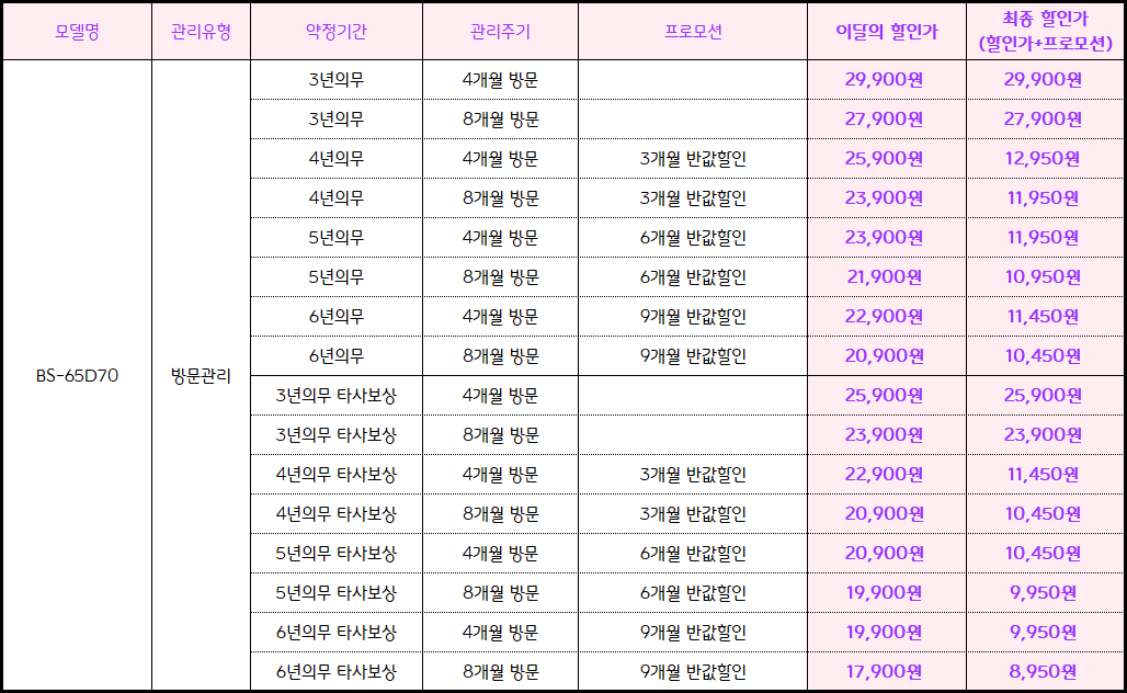 · 제휴카드 : 12,000원 ~ 30,000원 할인 (청호나이스 신한카드)
